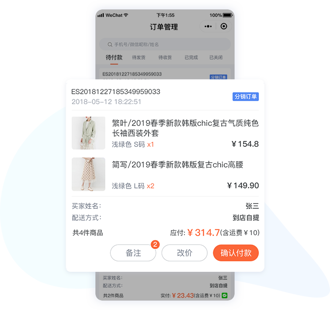 多维汇总自动统计,按成交额、订单数、商品数、付款会员等多个维度汇总销售